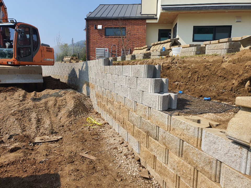 포크레인으로 보강토 시공작업을 진행했습니다.