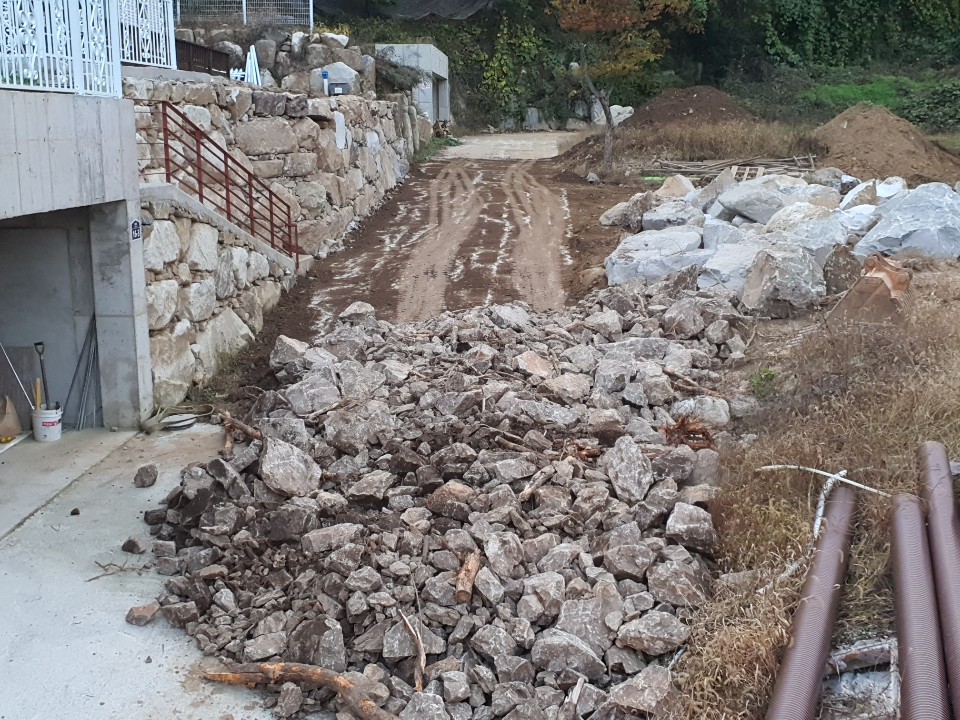 포크레인 옹벽공사 후 되매우기작업 및 평탄작업